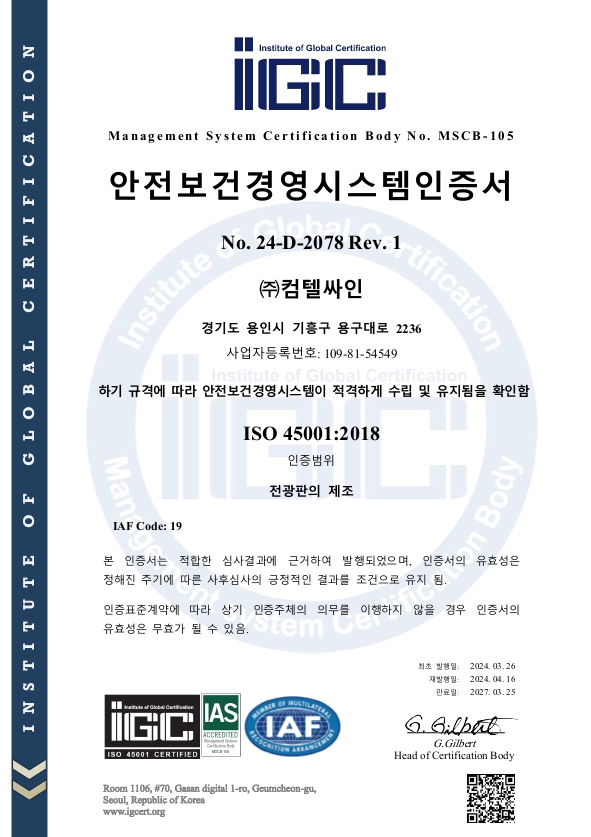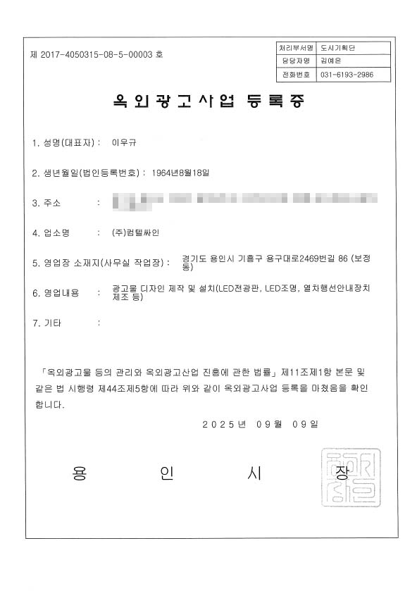 직접생산확인증명서(안내전광판,기상전광판,교통정보전광판)