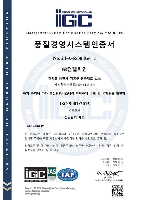 인증및등록증서