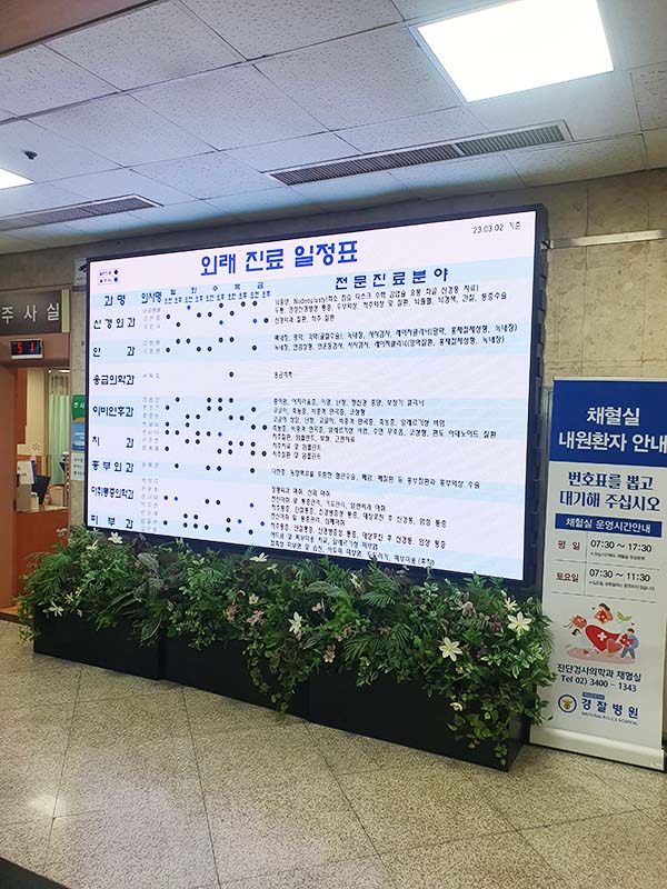 경찰병원 전광판 21-06-10 #공공#홍보안내#실내 본문 경찰병원 전광판 설치일자 2021-06-10 설치위치 경찰병원 로비 모듈사양 1.86 PITCH 사이즈 3,200mmX1,920mm 링크 설치일자 2021-06-10 설치위치 경찰병원 로비 모듈사양 1.86 PITCH 사이즈 3,200mmX1,920mm 링크 목록 List 이전글영광군청사 전광판 22.11.23 다음글에이펙스타워 전광판 22.12.22