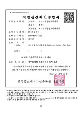 직접생산확인증명서(안내전광판,기상전광판,교통정보전광판)