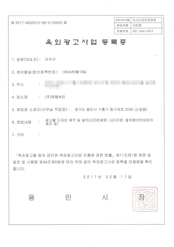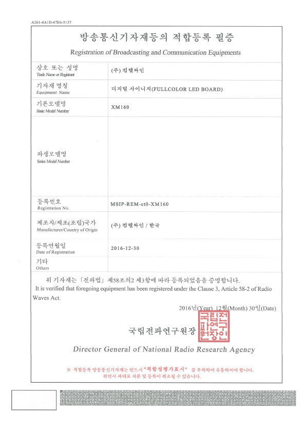 방송통신기자재등의 적합등록 필증(디지털사이니지)